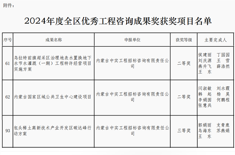 2025-04-168428 次2025年4月16日,内蒙古工程咨询协会公布了2024年度优秀咨询成果奖获奖单位名单,我司取得两个二等奖和一个三等奖,我司专业能力和服务质量再次获得行业的认可。此次获奖,不仅体…